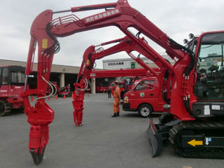写真の双腕重機君はガレキ撤去の為に阪神淡路大震災の後開発されたんですが