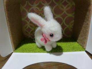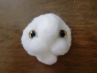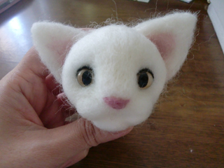 薄く作った耳も付けて、鼻をピンクの羊毛で色づけ。